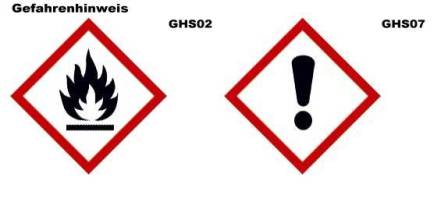 Gefahr: Extrem entzündbares Aerosol. Behälter steht unter Druck: Kann bei Erwärmung bersten. Verursacht schwere Augenreizung. Kann Schläfrigkeit und Benommenheit verursachen. Schädlich für Wasserorganismen, mit langfristiger Wirkung. Ist ärztlicher Rat erforderlich, Verpackung oder Kennzeichnungsetikett bereithalten. Darf nicht in die Hände von Kindern gelangen. Von Hitze/Funken/offener Flamme/heißen Oberflächen fernhalten. Nicht rauchen. Nicht gegen offene Flamme oder andere Zündquelle sprühen. Behälter steht unter Druck: Nicht durchstechen oder verbrennen, auch nicht nach der Verwendung. Einatmen von Staub/Rauch/Gas/Nebel/Dampf/Aerosol vermeiden. Schutzhandschuhe/Schutzkleidung/Augenschutz/Gesichtsschutz tragen. BEI KONTAKT MIT DEN AUGEN: Einige Minuten lang behutsam mit Wasser spülen. Vorhandene Kontaktlinsen nach Möglichkeit entfernen. Weiter spülen. BEI EINATMEN: An die frische Luft bringen und in einer Position ruhigstellen, die das Atmen erleichtert. Unter Verschluss aufbewahren. Vor Sonnenbestrahlung schützen und nicht Temperaturen von mehr als 50 °C aussetzen. Entsorgung des Inhalts/des Behälters gemäß den örtlichen/regionalen/nationalen/internationalen Vorschriften. Enthält Dipenten. Kann allergische Reaktionen hervorrufen.