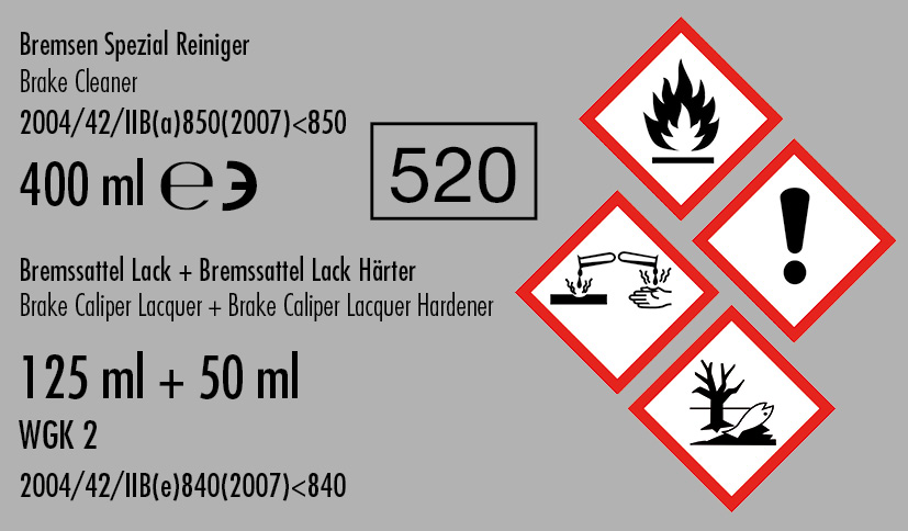 Gefahr: Flüssigkeit und Dampf entzündbar. Verursacht Hautreizungen. Verursacht schwere Augenschäden. Kann allergische Hautreaktionen verursachen. Kann Schläfrigkeit und Benommenheit verursachen. Schädlich für Wasserorganismen, mit langfristiger Wirkung. Ist ärztlicher Rat erforderlich, Verpackung oder Kennzeichnungsetikett bereithalten. Darf nicht in die Hände von Kindern gelangen. Vor Gebrauch Kennzeichnungsetikett lesen. Von Hitze, heißen Oberflächen, Funken, offenen Flammen und anderen Zündquellen fernhalten. Nicht rauchen. BEI BERÜHRUNG MIT DER HAUT (oder dem Haar): Alle kontaminierten Kleidungsstücke sofort ausziehen. Haut mit Wasser abwaschen/duschen. BEI KONTAKT MIT DEN AUGEN: Einige Minuten lang behutsam mit Wasser spülen. Vorhandene Kontaktlinsen nach Möglichkeit entfernen. Weiter spülen. Sofort GIFTINFORMATIONSZENTRUM oder Arzt anrufen. Unter Verschluss aufbewahren. Entsorgung des Inhalts/des Behälters gemäß den örtlichen/ regionalen/nationalen/internationalen Vorschriften. Enthält epoxidhaltige Verbindungen. Kann allergische Reaktionen hervorrufen. Enthält Bisphenol-A-Epichlorhydrinharze mit durchschnittlichem Molekulargewicht 700-1100, Isobutanol, n-Butylacetat, Lösungsmittelnaphtha (Erdöl), leichte aromatische, Benzolgehalt: < 0,1%.